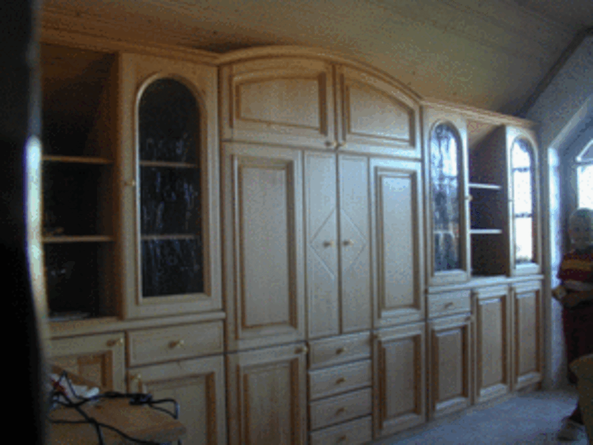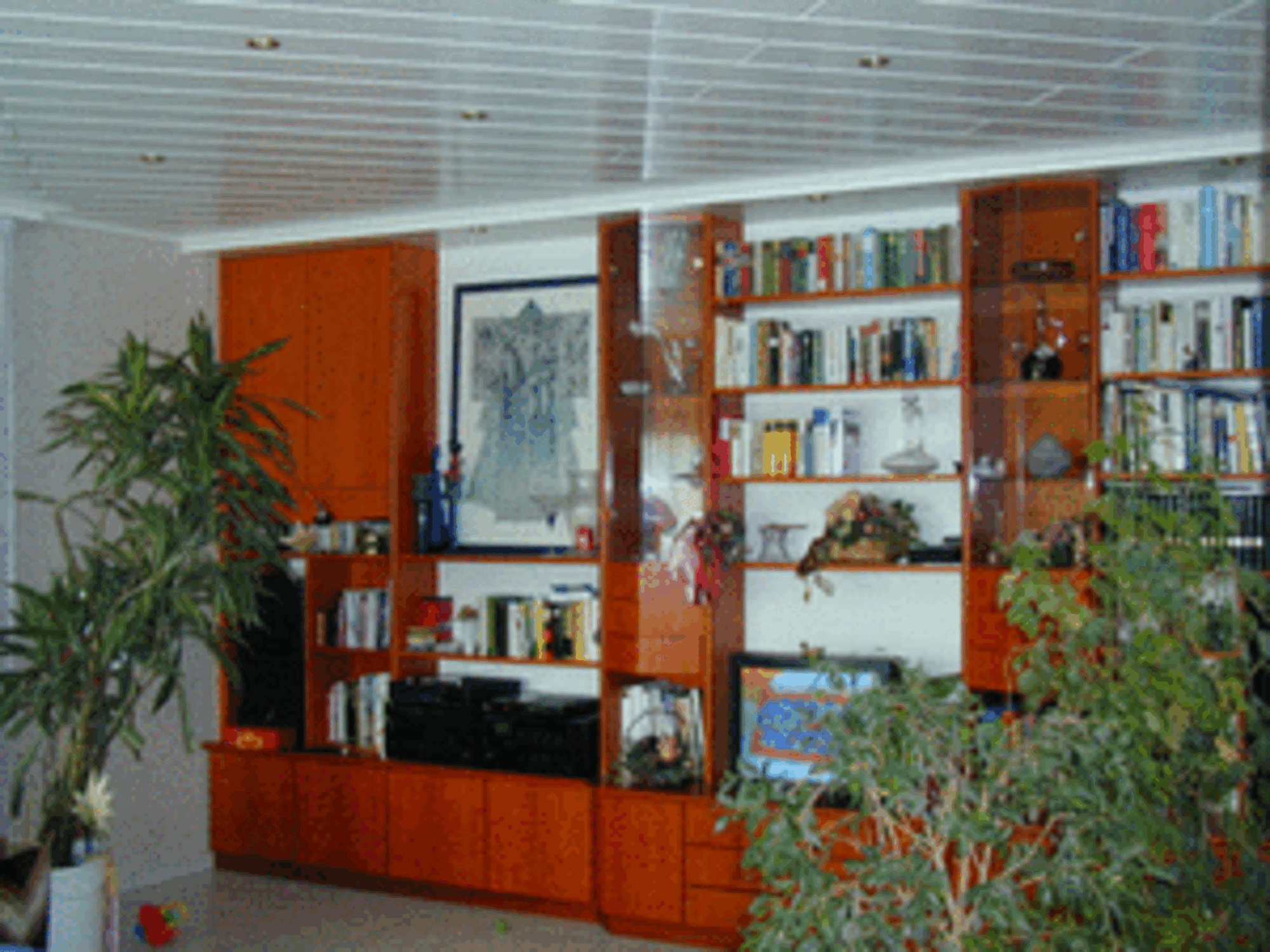 Einbauschrank in Kirschbaum und weiß lackierter Rückwand